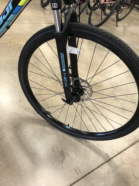- SR NEX suspension fork with 63mm travel
