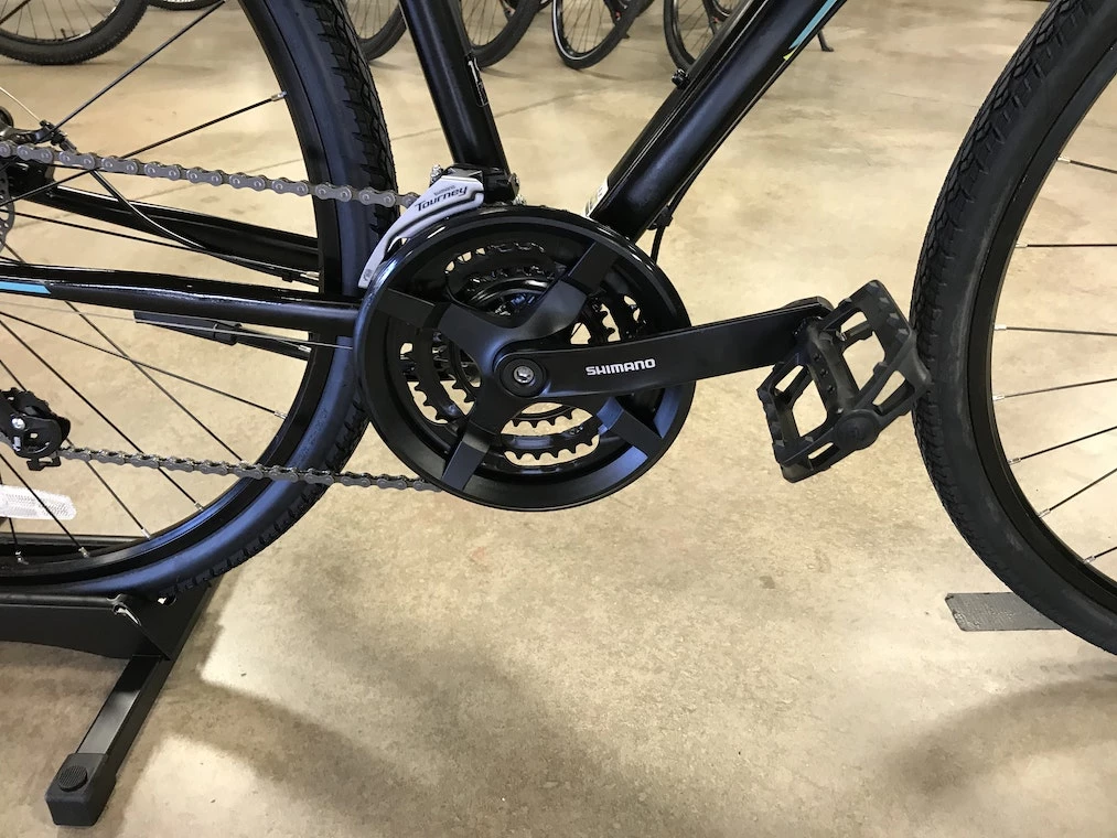 - Shimano 3×7-speed drivetrain